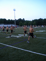 The team has football practice 4 xs a week all summer. These boys are more committed than you could imagine. Towards the end of the summer they start working on 40 yard dashes... they add 3 every day until the night of the 40-40 yard dashes.